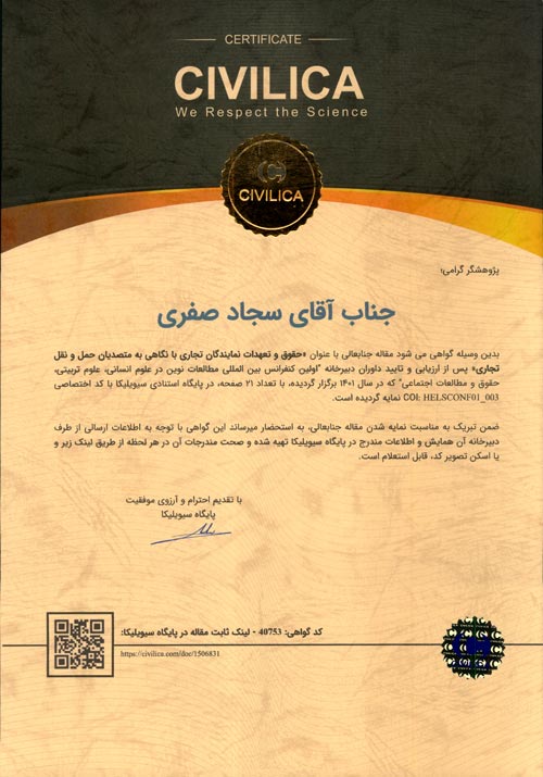 The first international conference on modern studies in humanities, educational sciences, law and social studies, July 29, 1401 / Thessaloniki, the first international research conference in accounting, management, economics, and humanities, September 27, 1401 / Cologne, Germany, Greece