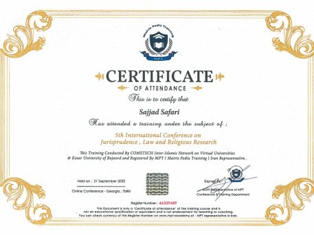 Certificate of the 5th International Conference on Jurisprudence and Law and Religious Studies