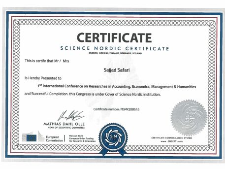 Certificate of the first international research conference in accounting, management, economics and humanities